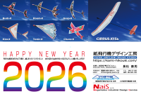 2026年明けましておめでとうございます。m(^^)m今年も紙飛行機デザイン工房をよろしくお願いいたします。つきましては1月1日より15日まで新春初売りセールを行います。お買い上げの2割程度の商品をお年玉としてプレゼントいたしますのでこの機会にどうぞ!おまけのご希望があれば要望などに書き込んでください。なければ忖度してお付けいたします。(^_-)-☆今年も楽しく紙飛行機を飛ばしましょう!!!